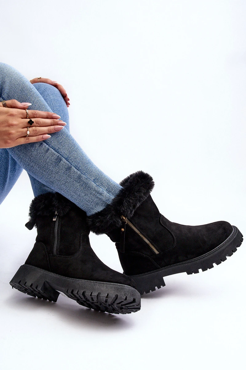 Botky Zamszové Dámské S Kožíškem Černá Hasiva