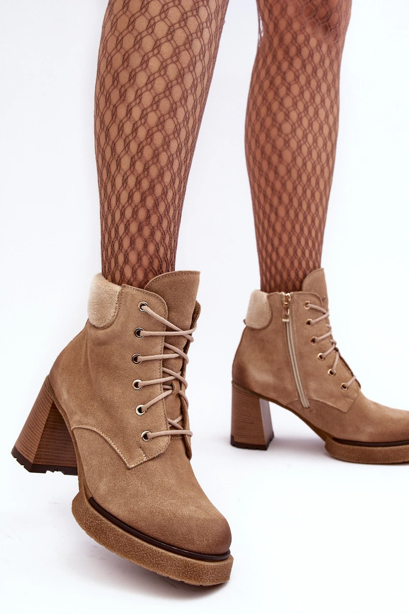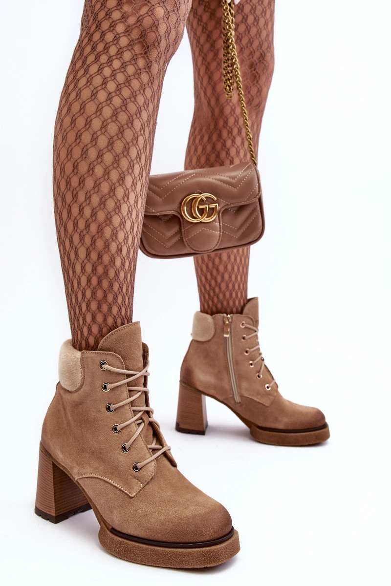 Botky Zamszové Šněrovací Na Sloupku Bežové Lemar Flomes