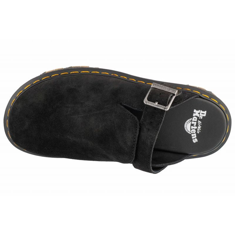 Zebzag mule jsou naší nejnovější inovací v oblasti pohodlí: jsou postaveny na hybridní vzduchové podrážce, která kombinuje péřovou EVA s odolným PVC. Jsou vyrobeny z lehkého, univerzálního semiše a jsou navrženy tak, abyste je mohli nosit, jakkoli se vám zachce - v létě nebo mimo obvyklé období. Nastavitelný pásek zajišťuje bezpečné uchycení, zatímco svařovaná konstrukce zajišťuje naši charakteristickou odolnost. Žluté svařovací švy označují mule jako Dr. Martens.