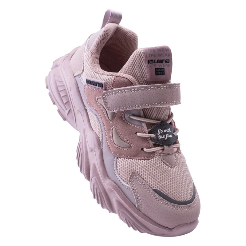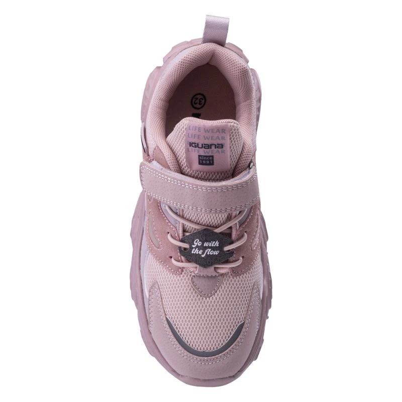 Dětské boty BONSI JRG značky Iguana jsou vyrobeny z kombinace síťoviny a syntetických vložek. Síťovina zvyšuje prodyšnost boty, zatímco syntetické vložky jemně pokrývají svršek a zpevňují konstrukci svršku. Klasické tkaničky byly nahrazeny elastickými pásky pro snadné nazouvání a vyzouvání, zatímco jediný pásek na suchý zip přizpůsobí svršek noze. Pěna EVA použitá v podrážce zvyšuje pohodlí boty.