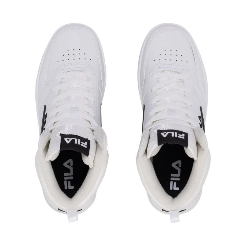 Dětská obuv Fila Rega NF bílá FFT0124 13036 Dětská a mládežnická obuv Fila pro každodenní nošení. Design inspirovaný retro stylem. Vysoký límec. Klasické šněrování. Syntetický svršek s dodatečnou perforací. Textilní lemování na límci a jazyku. Stélka. Poutko na patě. Gumová podrážka.