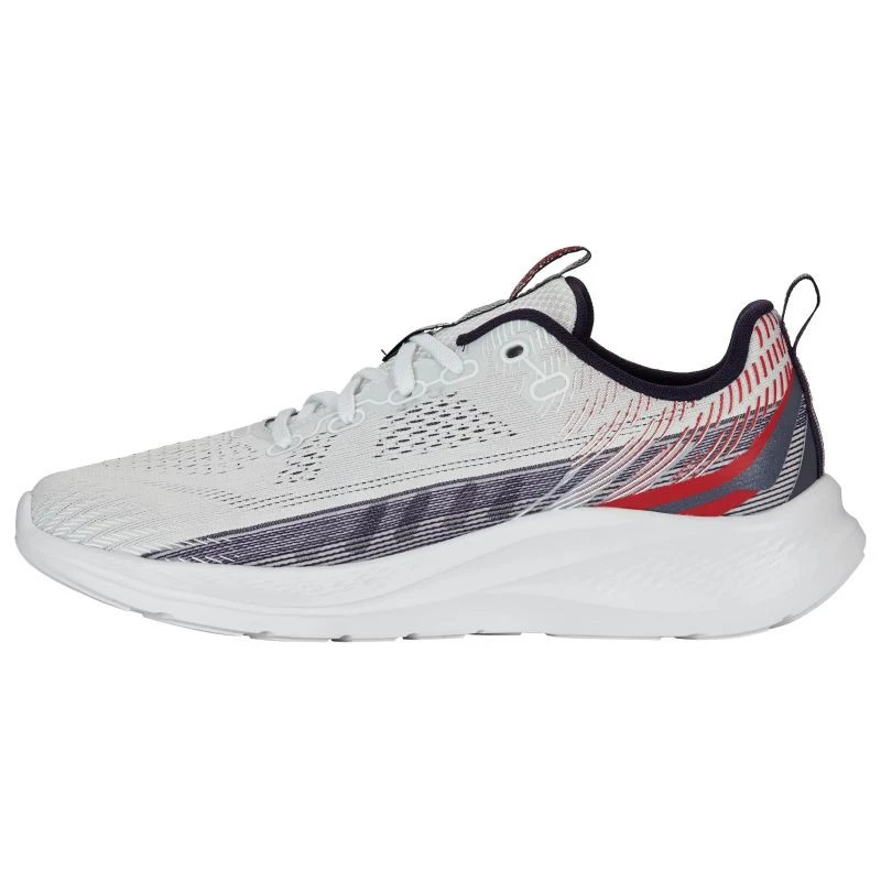 - Moderní design: klasická bílá barva s kontrastními akcenty v odstínech tmavě modré a červené dodává botám jedinečný charakter.