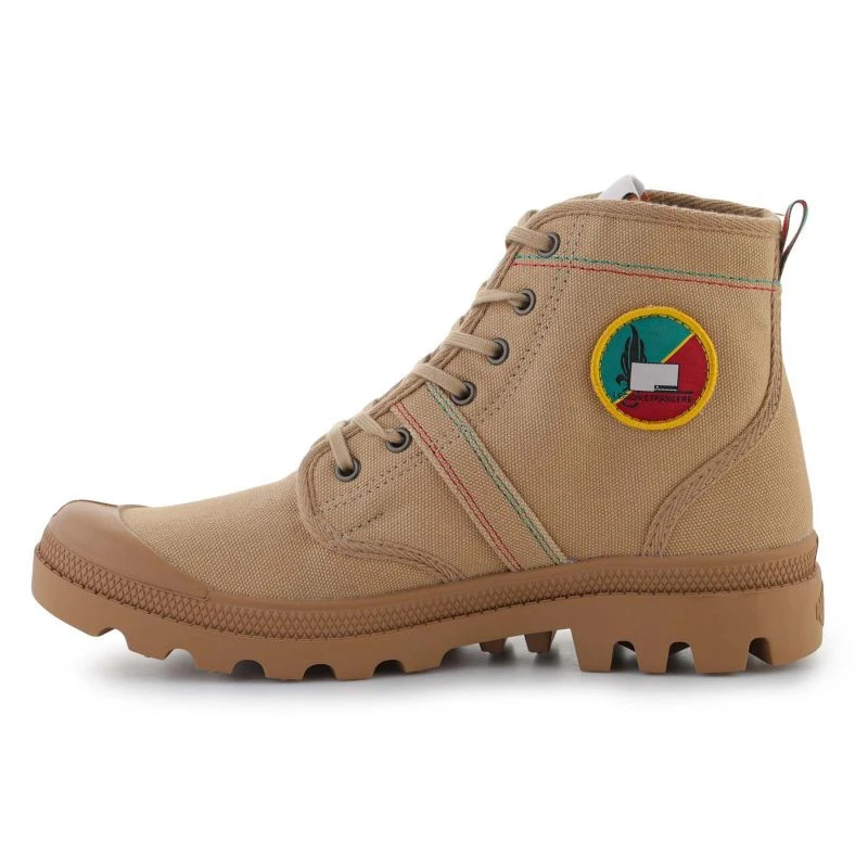 - Jako zvláštní odkaz na dědictví má model Pallabrousse Legacy svršek z hrubého bavlněného plátna, smíšený s kontrastním prošíváním a koženým jazykem, který evokuje barvy legie.