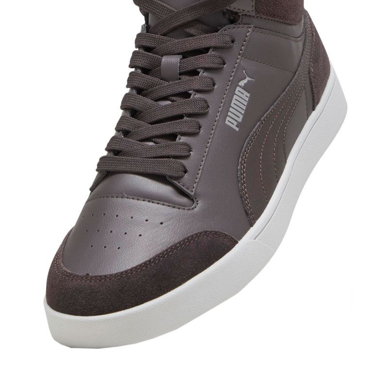 Pánské boty Puma Shuffle Mid Fur Flat grey 387609 03 od značky Puma se vám budou hodit do chladnějších dnů. Svršek je vyroben ze syntetické kůže. Zvýšený design. Perforace v přední části. Klasické šněrování. Pěnová stélka SoftFoam+. Izolovaný interiér. Gumová podrážka s dezénem ve tvaru rybí kosti.EAN čárové kódy zboží jsou: