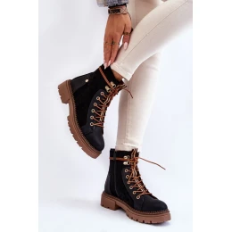 Skvělé dámské trapery byly vyrobeny z ekologické kůže. Model má klasické šněrování a zip na boku svršku. Botičky na plochém podpatku a s podrážkou se vzorkem. Pata je vyztužená. Lapače byly uvnitř zatepleny krátkou kožešinou. Rozhodně byste je měli mít ve svém šatníku!