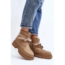 Teplé a módní boty z ekologické kůže. Stojí na plochém, stabilním podpatku. Nazouvací model se svrškem v délce nad kotníky. Uvnitř podšité kožešinou. Prošívaný svršek. Podpatek je rovněž zpevněný. Ideální pro chladné dny!