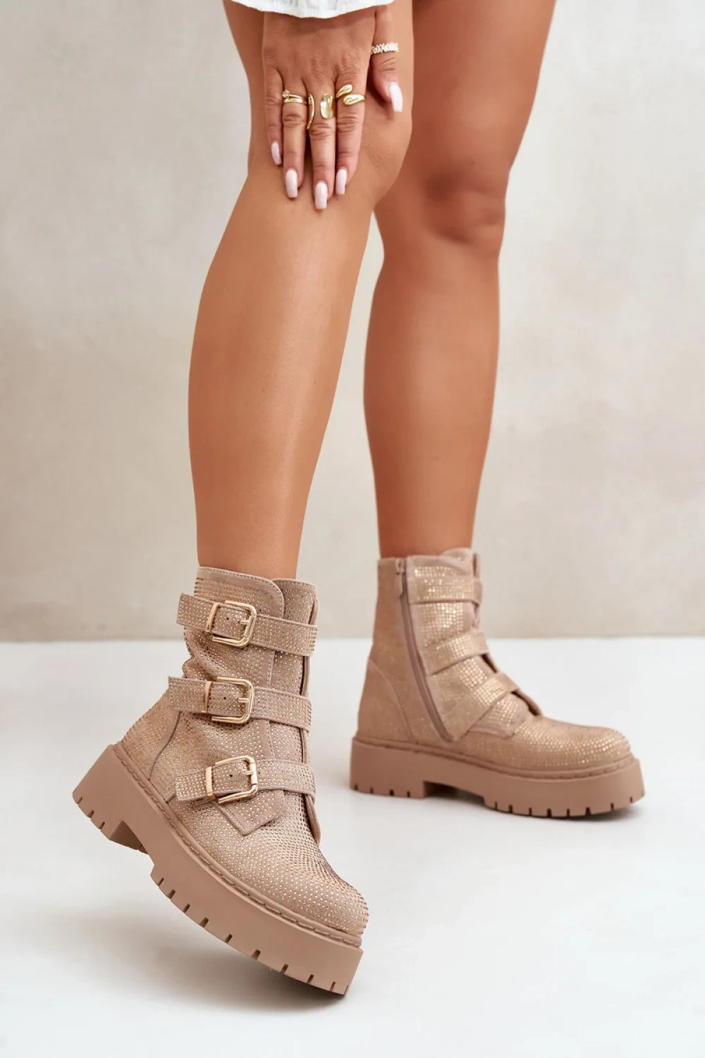 Stylové dámské botky jsou nezbytnou součástí podzimní a zimní garderóby. Tento model se vyznačuje zdobenou skařepou a nastavitelnými pásky s přezkami. Zapínají se na zip, co usnadní obouvání a svlékání obuvi. Vnitřek je vyplněn obuvnickým kocem. Skvěle se hodí do různých stylizací!