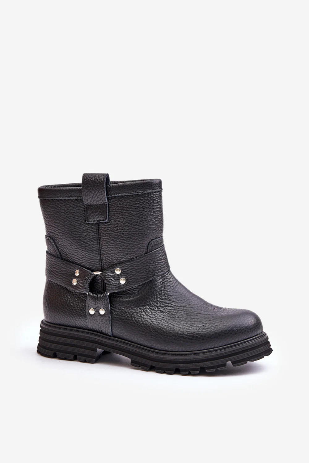 Tyto boty jsou vyrobeny z přírodní kůže a jsou ideální volbou pro každou příležitost. Jsou na plochém podpatku a poskytují pohodlí a stabilitu při chůzi. Zaoblený nos dodává botám jemný charakter. Model se zapíná na zip, díky čemuž se snadno nazouvá. Svršek zdobí výrazná kombinace proužků, které dodávají stylový nádech. Tyto boty jsou ideální pro každodenní stylizaci a kombinují eleganci s pohodlím.