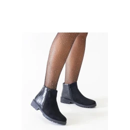 Černé botky s motivem krokodýlí kůže z ekologického semiše Mifsada jsou ideální volbou pro nadcházející zimu! Díky vyztuženému vnitřku poskytují teplo a pohodlí i v nejchladnější dny. Jejich elegantní mandlový špičatý tvar a vysoký kotník jim dodávají šarm, zatímco plochý podpatek zaručuje pohodlí po celý den. Vyrobené z vysoce kvalitních materiálů, tyto botky nejen vypadají stylově, ale jsou také odolné. Pružná gumová podrážka zajišťuje stabilitu a jistotu kroku. Buď trendy a vsaď na tyto jedinečné botky hned teď! Ideální na podzim a zimu.