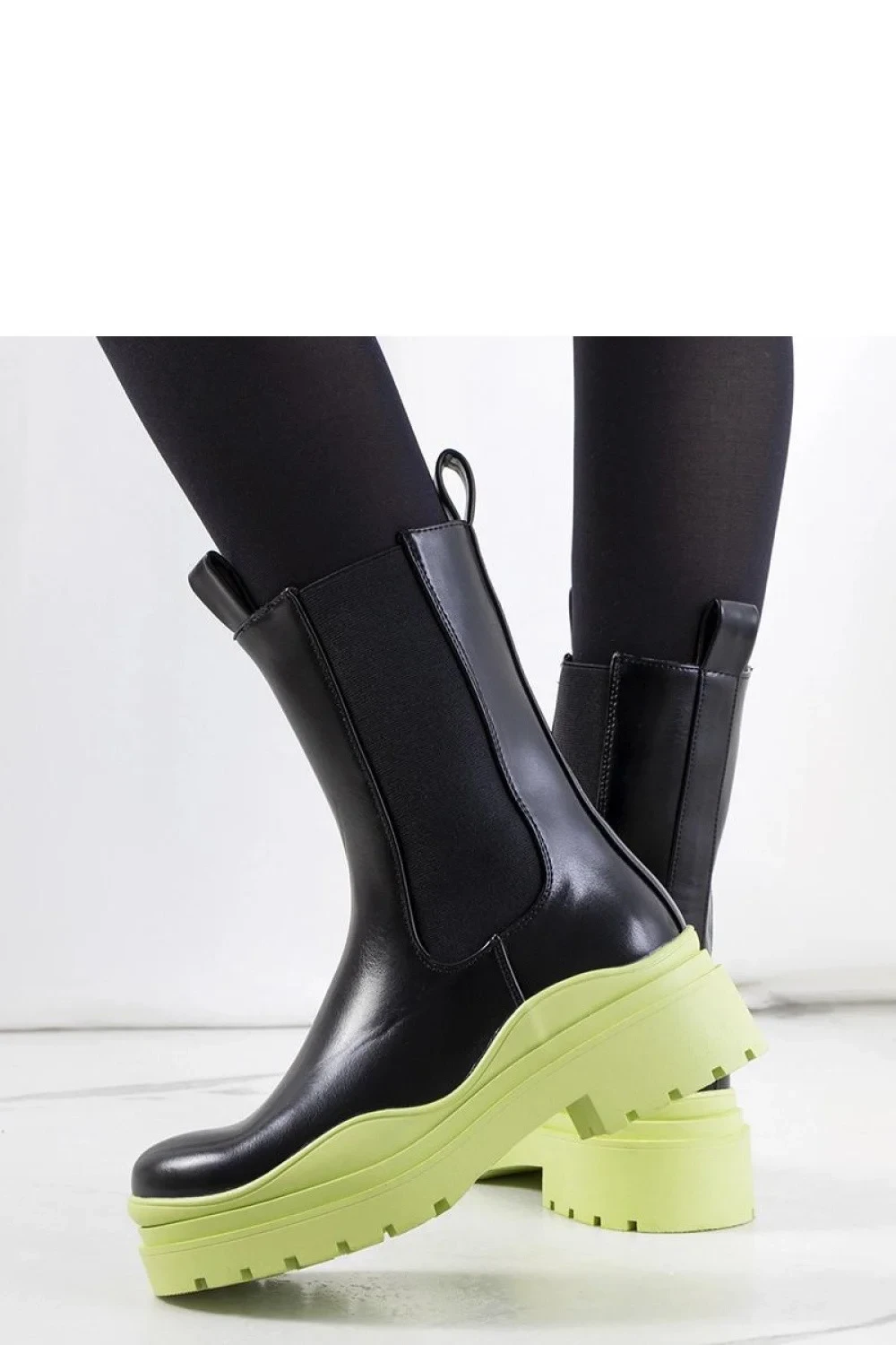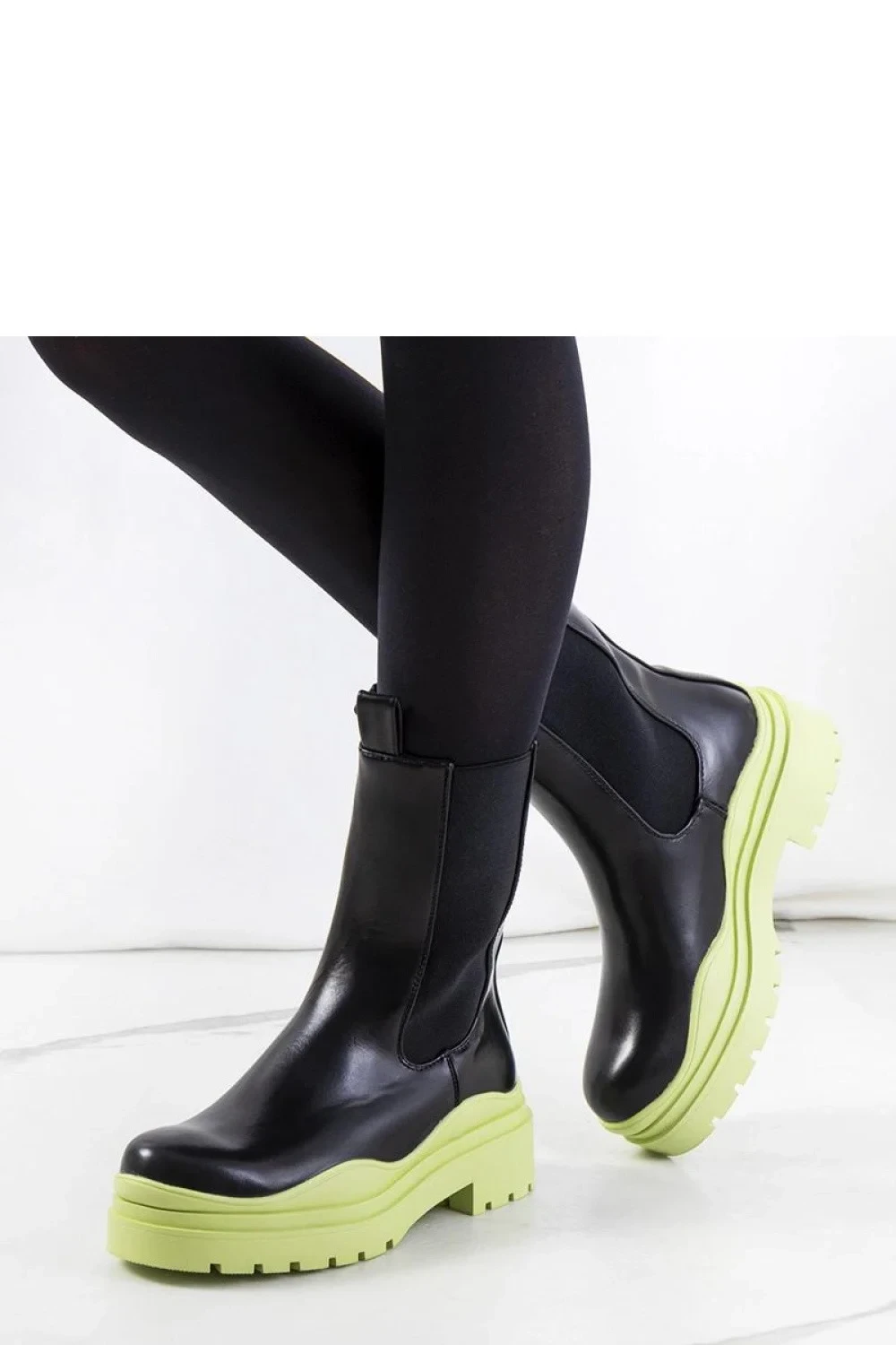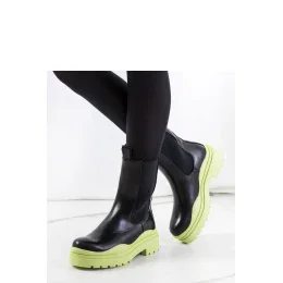 Černé kotníčkové boty s zelenou podrážkou modelu Nester jsou jedním z nejžhavějších trendů této sezóny! Jejich zelená vysoká podrážka s vlnitým spojem svršku vypadá skvěle a dělá tyto botky výraznými mezi ostatními klasickými modely. Boty jsou vyrobeny z vysoce kvalitních materiálů s ohledem na náš komfort. Elastické materiálové vložky se perfektně přizpůsobí každé noze, což zajišťuje pohodlí při nošení. Velikost je standardní, takže se doporučuje řídit svým běžným číslem. Kotníčkové boty nemají žádnou podšívku a jejich podrážka je vyrobena z gumy ve zelené barvě. Zapínání je na zástěrku a patří do kolekce Podzim/Zima.