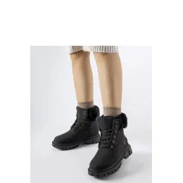 Černé trapery s ozdobným kožíškem Alberta jsou ideální obuv na chladné zimní dny. Vyrobené z ekologické kůže, mají izolaci, která poskytuje pohodlí a teplotu po celý den. Jejich výška nad kotníkem chrání před větrem a chladem, a ozdobný kožíšek jim dodává jedinečný šarm. Šněrovací uzavírání zaručuje ideální přizpůsobení k noze. Tyto elegantní trapery budou skvělým doplňkem k vaší podzimně-zimní garderobě, bez ohledu na příležitost.