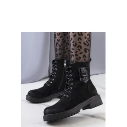 Černé traperky Judy jsou nezbytným prvkem každé šatní skříně. Jejich traperová podrážka nejen skvěle vypadá, ale také poskytuje nepřekonatelný komfort při nošení. Tyto botky skvěle doplní každý outfit, přidávají mu módní akcent. Svršek je vyroben z kvalitní ekologické kůže a vnitřek je vyztužen teplým materiálem napodobujícím kožešinu. Velikost je standardní, takže je vhodné vybrat svou velikost. Tyto traperky jsou ideální na podzim a zimu díky svému vyztužení. Podrážka je vyrobena z pryže a černá barva zaručuje, že se hodí k prakticky každému outfitu. Objevte svůj oblíbený vzhled s traperkami Judy!