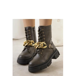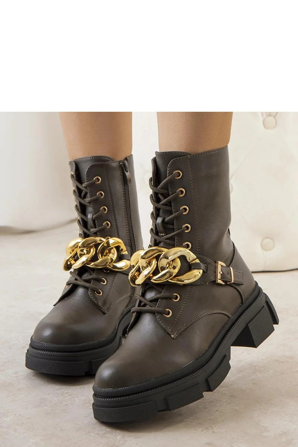 Zelené traperky s řetězem Iversen jsou absolutním hitem této sezóny! Tyto boty jsou ideální kombinací nejnovějších módních trendů. Svršek z vysoce kvalitní ekologické kůže v módním zeleném provedení, zdobený zlatými detaily, dělá tyto traperky nejen stylovými, ale také velmi pohodlnými. Vnitřek bot je vyložený měkkým kožešinovým materiálem, což zajišťuje teplo a pohodlí při nošení. Boty mají standardní číslování, takže je dobré se řídit svým běžným velikostním číslem. Kromě toho mají boty zateplení, což z nich činí ideální volbu pro chladné podzimní a zimní dny. Podrážka je vyrobena z gumy v zeleném provedení. Boty z kolekce Podzim/Zima se skvěle hodí jako doplněk k trendy stylizacím.