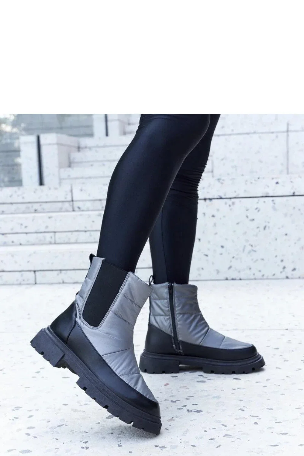 Šedé zateplené sněhule Galvani jsou ideální obuví na zimu. Mají praktický zip pro snadné nazouvání a vyzouvání, zatímco vysoký svršek poskytuje dodatečnou ochranu před sněhem a dodává stylový efekt. Jsou vyrobeny z gumy a jsou odolné proti vlhkosti, takže udrží vaše nohy v suchu i v těch nejchladnějších dnech. Tyto sněhule jsou kombinací funkčnosti, módního designu a pohodlí. Jsou ideální pro ženy, které v zimních podmínkách ocení styl a teplo.