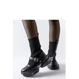 Černé kotníčkové boty s ponožkovým svrškem Ivana jsou skvělou volbou pro každou moderní ženu, která si cení pohodlí a stylu. Jejich elegantní design se skvěle hodí jak k každodenním, ležérním outfitem, tak k formálnějším outfitům. Výška nad kotníkem jim dodává eleganci a kulatá špička zase jemnost. Další výhodou je, že se jedná o natahovací model, což zajišťuje snadné obouvání a svlékání. Boty jsou vyrobeny z kvalitní ekologické kůže a podrážka z gumy zajistí pohodlí a jistotu při chůzi. Černé kotníčkové boty s ponožkovým svrškem Ivana nejsou jen obuví, ale také vyjádřením osobního stylu a sebevědomí. Ideální na podzim a jaro, budou skvělým doplňkem do vašeho šatníku.