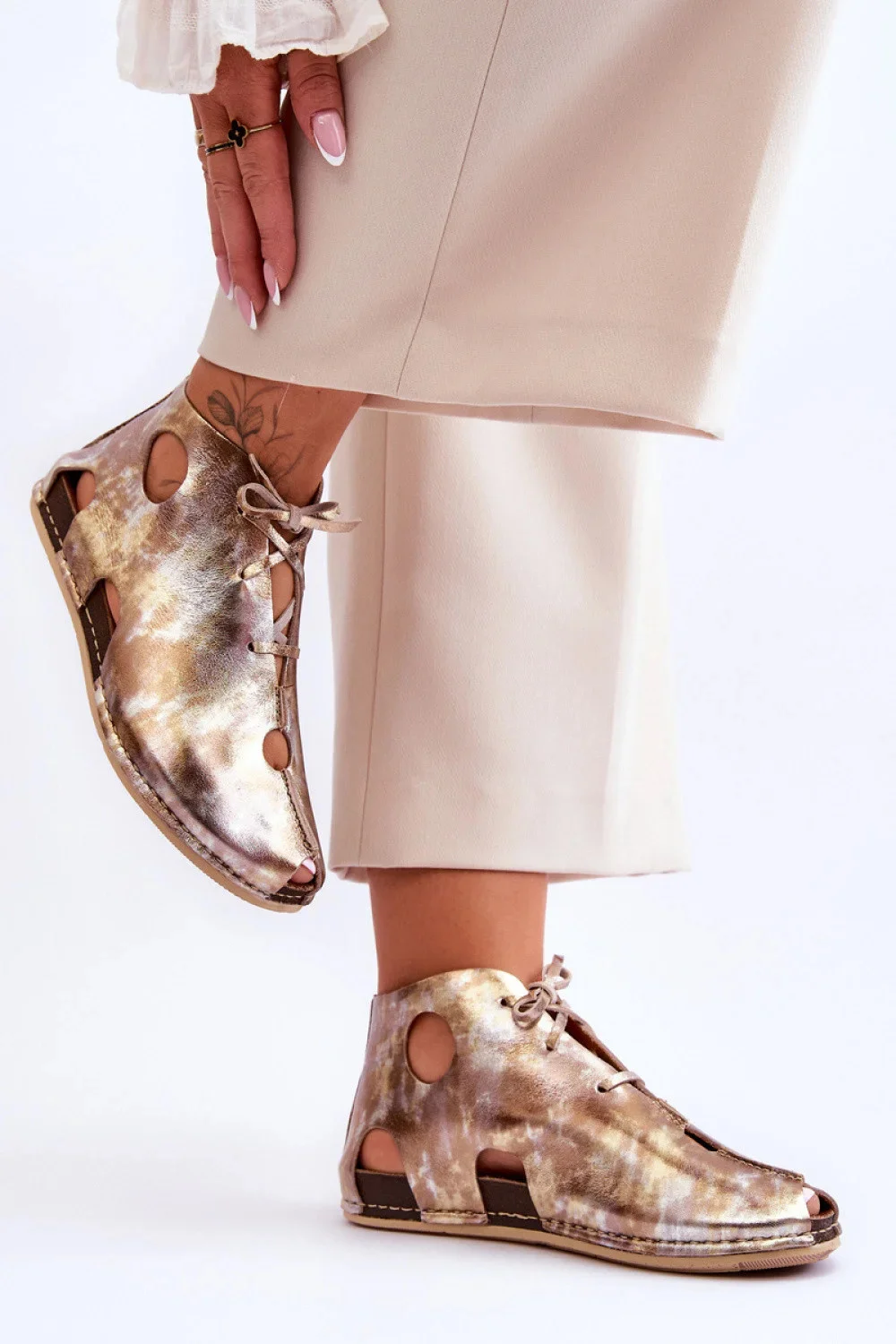 Lehké, prodyšné, pohodlné - tyto vlastnosti ideálně popisují botky od firmy Maciejka! Svršek je vyroben z hladké kůže. Řada výřezů zajistí optimální teplotu pro nohy i v nejteplejších dnech. Šněrování umožňuje přizpůsobit botu šířce nohy. Skvělé doplnění každodenních outfitů! Tento střih je naprosto vhodný do jakéhokoli prostředí a zůstává na prvním místě v oblasti stylu a pohodlí.