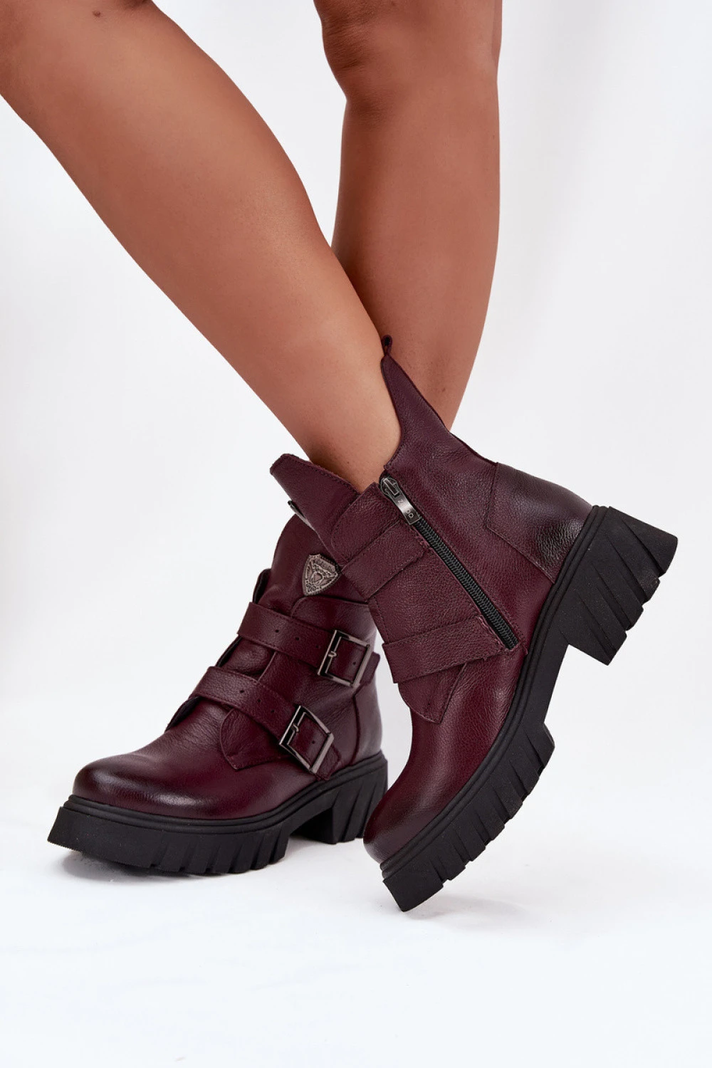 Elegantní botky ze zpracované kůže jsou skvělou volbou na chladnější dny. Uvnitř jsou vybaveny filcem, který poskytuje teplo a pohodlí. Zip usnadňuje obouvání, a dva nastavitelné popruhy s přezkami jim dodávají výjimečný charakter a umožňují ideální přizpůsobení. Dekorativní detail na jazyku jemně zdůrazňuje jejich elegantní vzhled. Tyto botky jsou skvělým návrhem, který skvěle doplní jak každodenní, tak formální stylizace.
