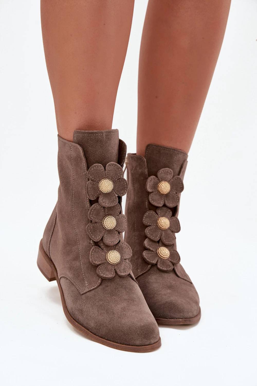 Dámské boty z přírodního semiše jsou skvělou volbou pro ženy, které ocení eleganci a jemnost. Vyrobené z vysoké kvality materiálu nabízejí nejen estetický vzhled, ale také pohodlí během celého dne. Zapínají se na zip. Špička boty je zdobená krásnými, okouzlujícími květy, které jim dodávají jedinečný, jemný charakter. Díky tomu jsou skvělým doplňkem jak do každodenních, tak do elegantnějších stylizací. Skvěle ladí se šaty, sukněmi nebo kalhotami.