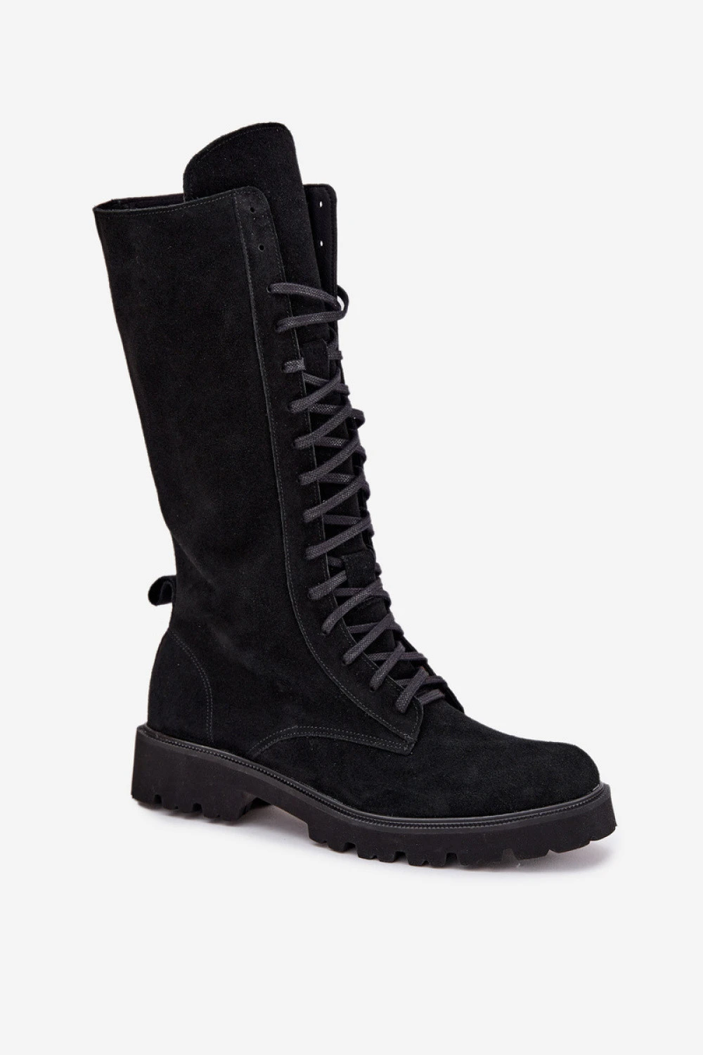 Dámské kotníčkové boty ze syntetického semiše jsou skvělým návrhem na každou příležitost. Dosahující do poloviny lýtkového svalu ideálně zdůrazňují nohu, dodávají jí štíhlost. Celá délka límce je zdobena šněrováním, které nejen přitahuje pohled, ale také umožňuje ideální přizpůsobení noze. Navíc jsou botky zapínány na zip, co usnadňuje jejich obouvání a svlékání. Tyto botky jsou skvělou volbou jak pro každodenní, tak pro elegantnější stylizace.