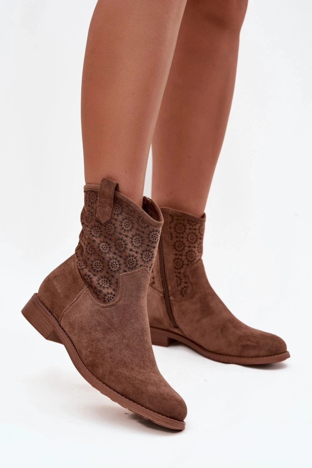 Botky značky S.Barski jsou návrhem, který skvěle kombinuje pohodlí s decentní elegancí. Vyrobené z měkkého dotyku ekologického semiše vypadají neuvěřitelně stylově a zapadají do aktuálních trendů. Jemný ažurový vzor na stříbře jim dodává lehkost, ženský šarm a dělá boty výraznými svým originálním charakterem. Model je umístěn na plochém podpatku, který zajišťuje pohodlí a volnost při každodenním nošení. Zapínání na zip usnadňuje obutí a sundání obuvi, činí je funkčním a pohodlným řešením na každý den. Jsou to botky, které se skvěle osvědčí jak v každodenních stylizacích s kalhotami, tak i v ženských sestavách s šaty nebo sukní, dodávají jim módní charakter.