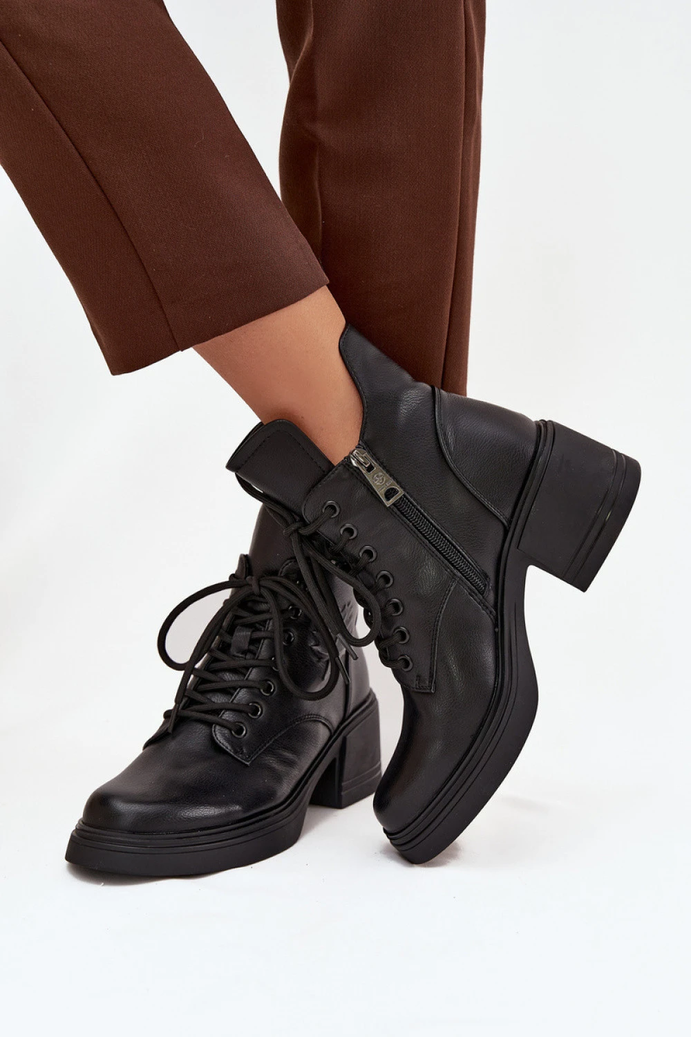 Botky značky Vinceza pro ženy vyrobené z přírodní kůže jsou skvělou obuví na chladnější dny. Stabilní podpatek typu kostka zajišťuje pohodlí během nošení a kombinace šněrování s zipem usnadňuje obouvání a přizpůsobení se noze. Vnitřek je vyztužen měkkým koženým vycpávkem, který udržuje teplo a pohodlí, zatímco jemné tisknutí ve formě listu na boku dodává celku stylový akcent. Jedná se o model, který se osvědčí jak v běžném dni, tak i v elegantnějších stylizacích.