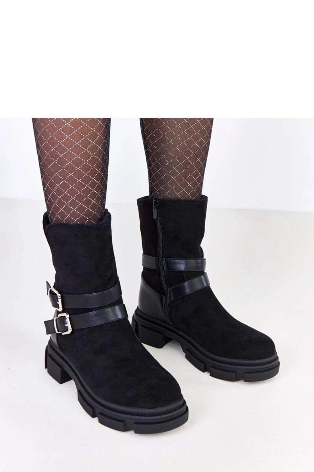 Elegantní a pohodlné dámské botky vyrobené z měkkého semišového ekologického kůže, které spojují eleganci s pohodlím každodenního nošení. Model je vyztužený, díky čemuž se skvěle hodí do chladnějších dnů. Botky s výškou 18,5 cm a kulatou špičkou se dokonale přizpůsobují noze, a 5 cm vysoký podpatek zajišťuje pohodlí a stabilitu při chůzi. Boční zip usnadňuje rychlé obouvání a svlékání, a ozdobné přezky dodávají botám módní a efektní charakter. Vložka z umělého materiálu zvyšuje pohodlí při nošení. Ideální volba pro ženy, které ocení spojení pohodlí, tepla a stylových detailů v každodenních outfitech.