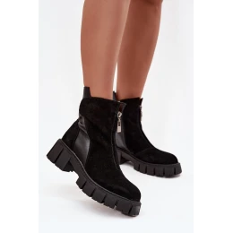 Stylové dámské kotníkové boty z přírodního semiše jsou nabídkou pro ženy, které ocení eleganci v moderním provedení. Model s masivním blokovým podpatkem zaručuje stabilitu a pohodlí, a vyhřívaný interiér zase zaručuje, že boty jsou ideální na chladnější dny. Zip na straně usnadňuje obouvání, zatímco ozdobný zip vpředu dodává celku moderní, trochu rockový charakter. Kulaté špičky zdůrazňují klasický střih. Jsou to univerzální kotníkové boty, které se skvěle hodí do každodenních stylizací, stejně jako do více elegantních sestav.