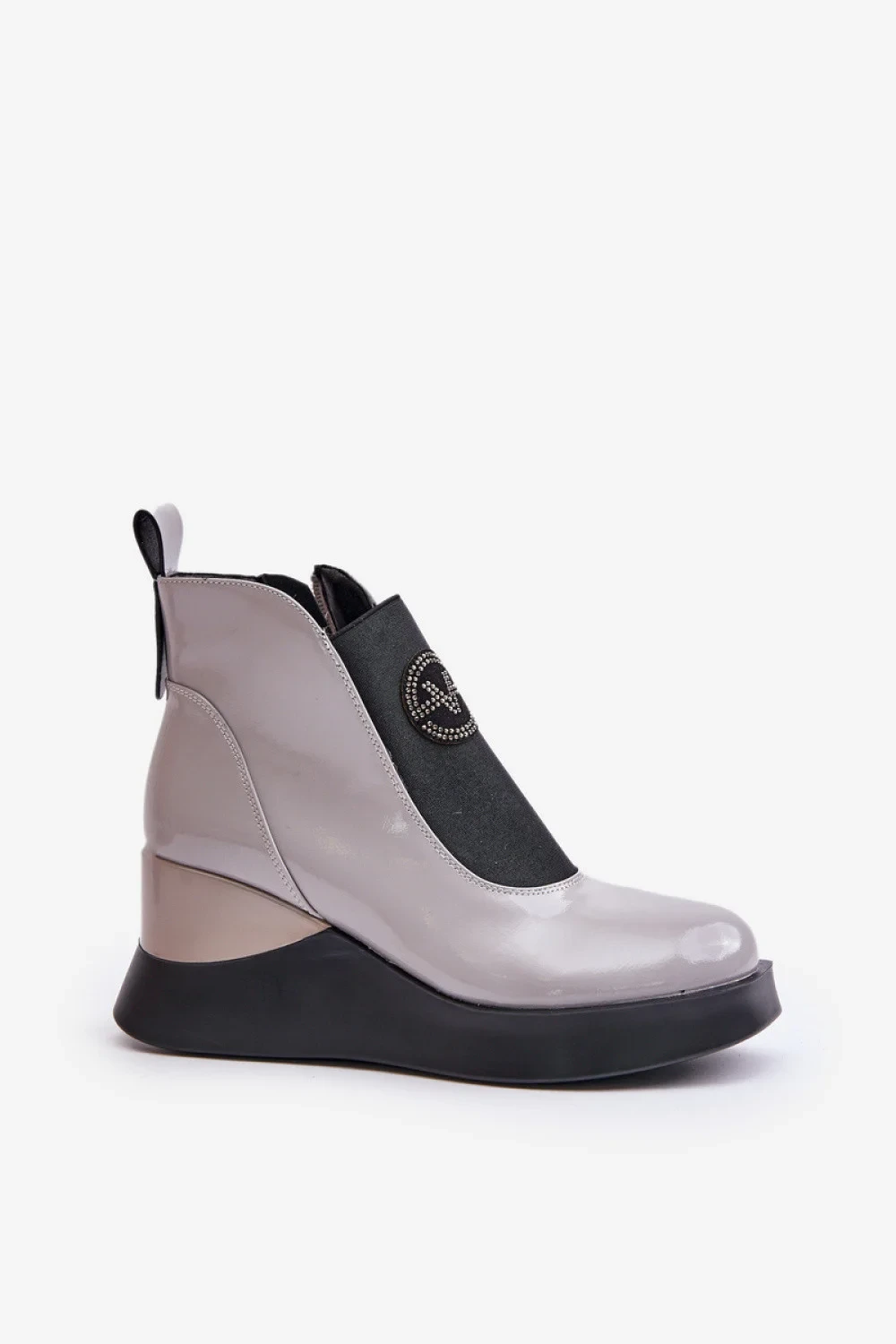 Dámské boty z přírodní kůže. Stojí na kotníku a platformě. Na boku se zapínají na zip. Elastická vsadka a malý ornament na svršku. Zaoblené špičky. Zateplené přikrývkou na boty. Tento model je ideální volbou pro ženy, které hledají módní a zároveň pohodlnou obuv na každý den!