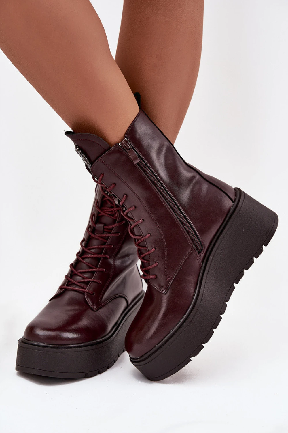 Kotníkové boty značky Jezzi jsou nabídkou pro ženy, které ocení pohodlí spojené s módním vzhledem. Vyrobené z přírodní kůže, vynikají trvanlivostí a elegantním vzhledem. Umístěné na stabilní platformě s klínem, opticky prodlužují postavu a zároveň poskytují pohodlí během nošení. Vnitřek bot byl vyztužen, díky čemuž se perfektně hodí do chladnějších dnů podzimně-zimní sezóny. Model má šněrování a boční zip, co usnadňuje přizpůsobení a rychlé obutí. Zvláštní pozornost přitahují třpytivé krystalky umístěné na jazyku, skládající se do tvaru srdce, tento ozdobný detail přidává výjimečný šarm a zdůrazňuje jejich ženský charakter. Tato obuv skvěle padne jak do každodenních, tak do elegantnějších stylizací, stává se tak originálním akcentem v šatníku.