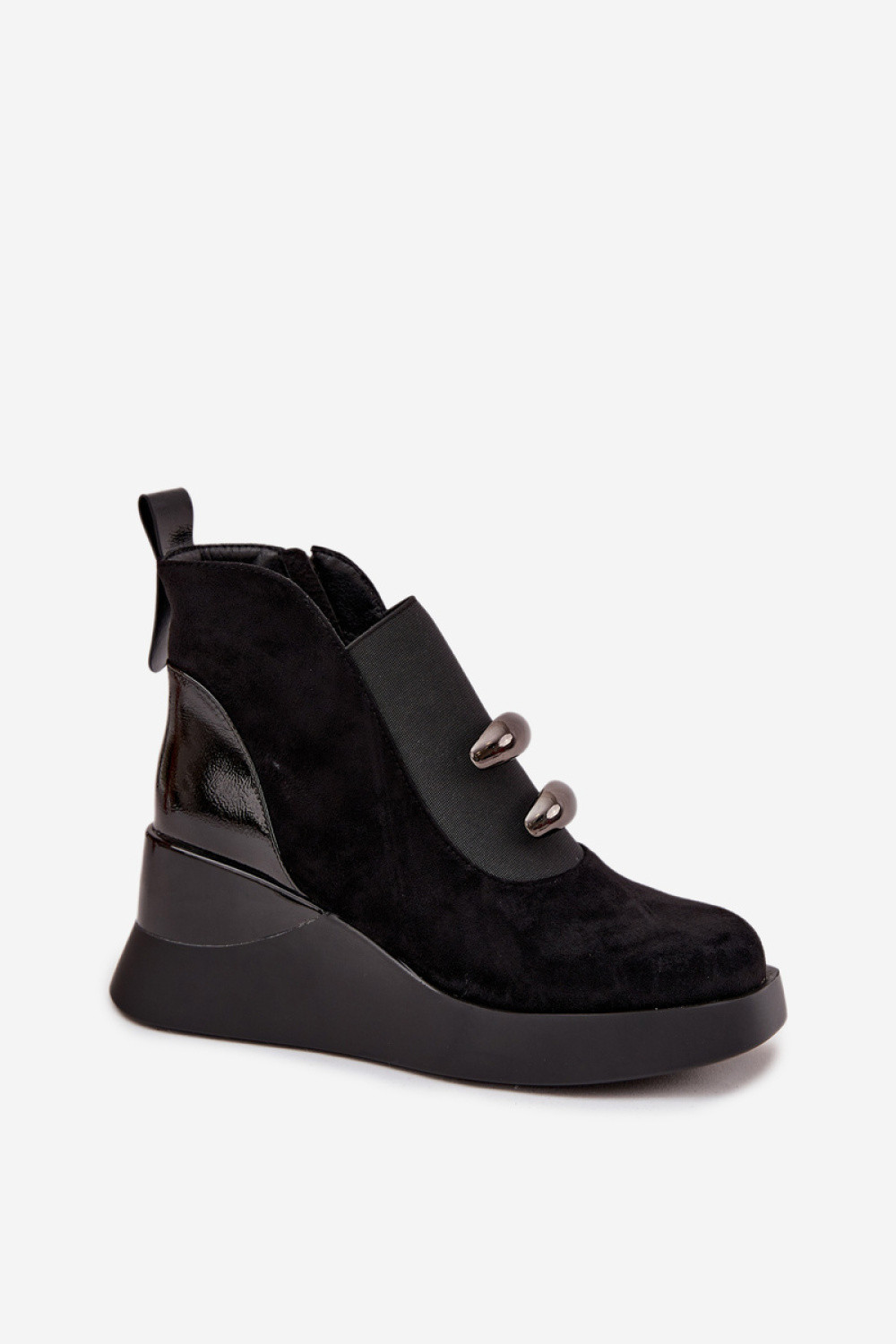 Botky dámské vyrobené z ekokože. Model umístěný na klíně jemně zvedá postavu, poskytující stabilitu a pohodlí při nošení. Vepředu je elastický vložek a dva ozdobné prvky, které dodávají botkám výjimečný charakter. Zip na straně usnadňuje obouvání a jemné zateplení zase zajišťuje, že botky perfektně poslouží v chladnějších dnech. Jedná se o univerzální model, který skvěle ladí jak s každodenními, tak s elegantnějšími stylizacemi, zdůrazňující jejich ženský a moderní styl.