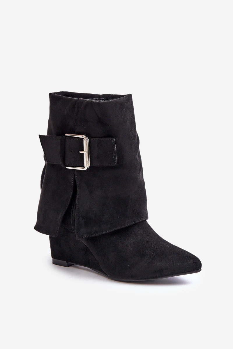Boty Na Klínu S A Přezkou Eko Semišové Černé model 21679522 - Boto