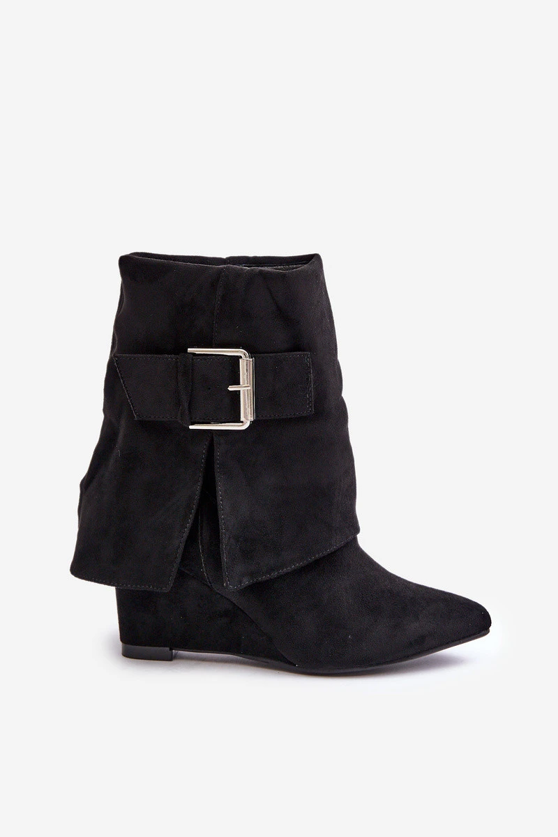 Boty Na Klínu S Ohnutým Závěsem A Přezkou Eko Semišové Černé Vortinia