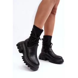 Boty Na Masivní Platformě S Tkaničkou Černé Big Star MM274590