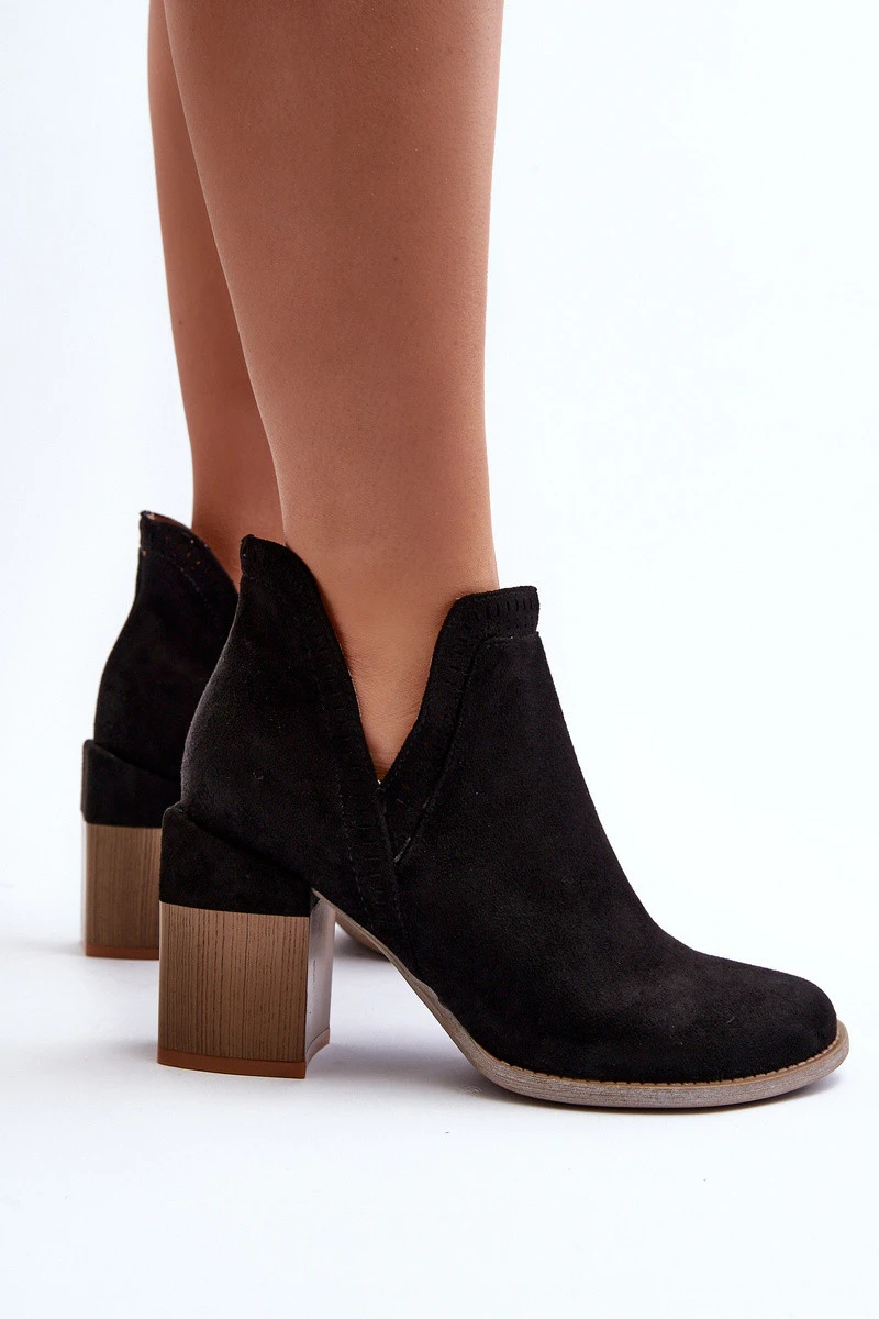 Boty na masivním podpatku s výstřihem černé model 21647731 - Boto