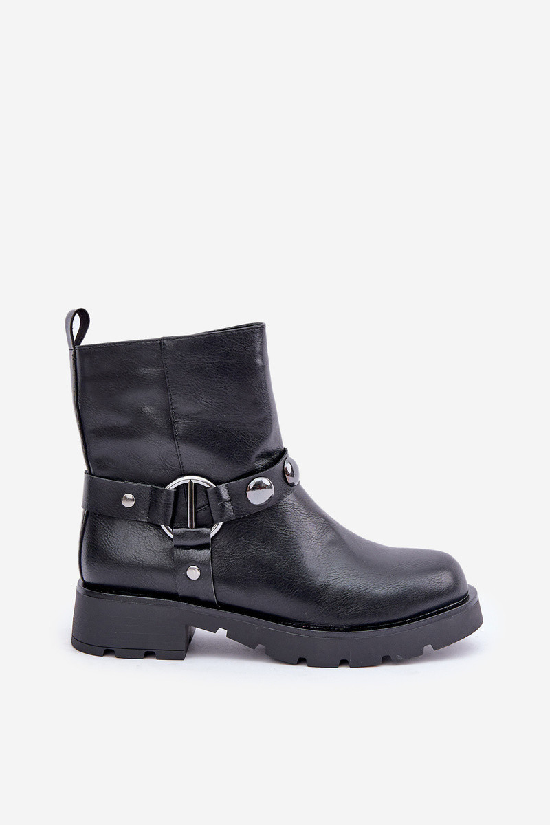 Boty Na Ploché Podpatky Z Ozdobnými Pásky Černé model 21680643 - EVENTO