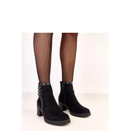 Stylové a ženské dámské botky vyrobené z měkké ekologické zamszové kůže, které skvěle spojují eleganci s pohodlím. Ideální na chladnější dny, díky zateplení poskytují pohodlí a teplo během nošení. Model s výškou nad kotníkem a 11,5 cm vysokou špičkou vypadá velmi elegantně. Stabilní podpatek typu sloupek o výšce 7 cm jemně zeštíhluje nohy, zároveň zajišťující pohodlí po celý den. Botky mají zip pro snadné obouvání a ozdobné spony, které dodávají celku moderní, stylový charakter. Kulatá špička a textilní vložka zaručují pohodlí každým krokem. Ideální volba pro ženy, které oceňují spojení elegance, pohodlí a módních detailů, skvělé pro každodenní a městské stylizace.