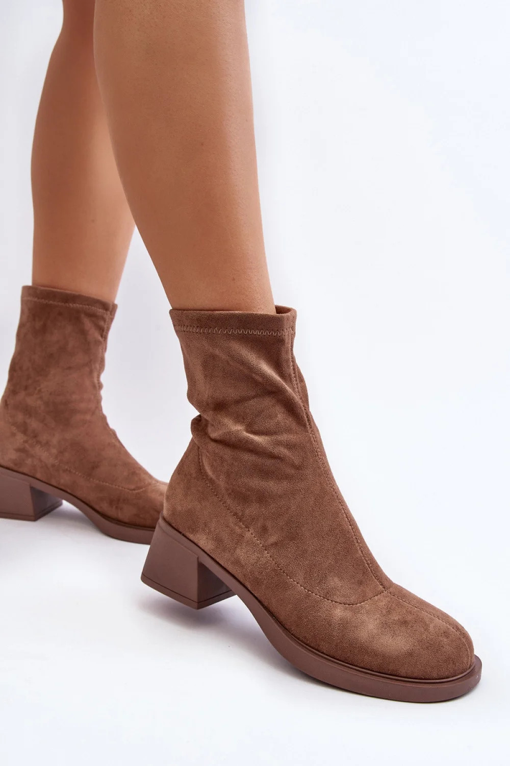 Dámské nazouvací boty z ekologického semiše. Stojí na nízkém blokovém podpatku. Zaoblená špička. Svršek v délce ke kotníkům. Klasický střih, který se hodí téměř ke každému podzimnímu outfitu!