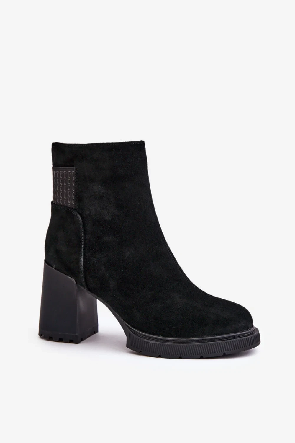 Elegantní boty z přírodního semiše jsou ideální volbou pro chladnější dny. Stojí na stabilním jehlovém podpatku a zajišťují pohodlné nošení po celý den. Vnitřek je zateplen přikrývkou na boty, která zaručuje teplo a pohodlí i v mrazivých dnech. Díky praktickému zapínání na zip je obouvání a vyzouvání rychlé a snadné.