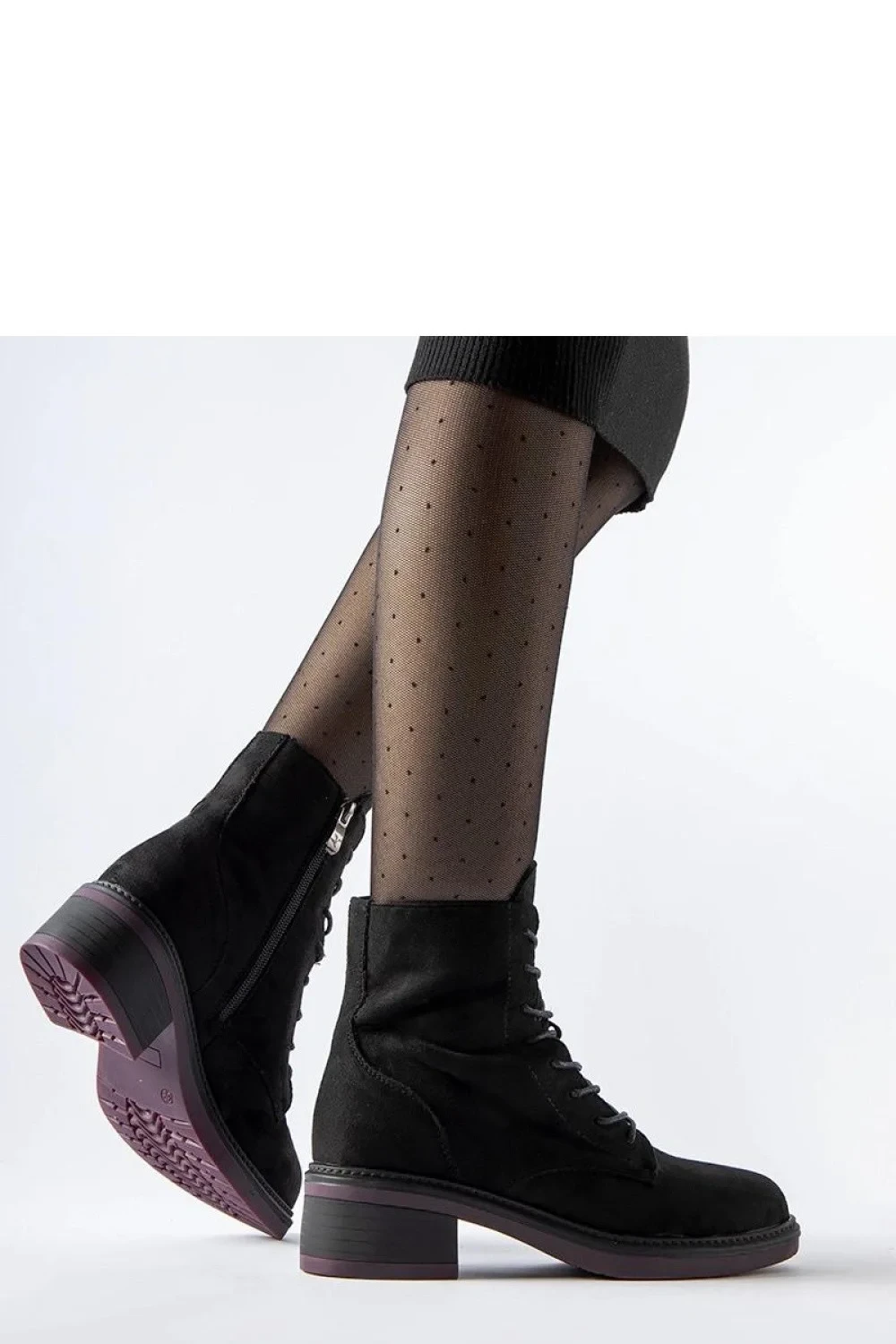 Tento model Teo jsou klasické, černé boty vyrobené z vysoce kvalitní ekologické kůže. Jejich charakteristickým prvkem je fialová podrážka, která jim dodává originalitu. Boty mají zateplení, co je dělá ideální na chladnější dny. Pohodlná gumová podrážka poskytuje pohodlí při chůzi. Zipové uzavírání usnadňuje jejich obouvání a svlékání. Tyto stylové boty určitě budou skvělým doplňkem podzimně-zimního šatníku.