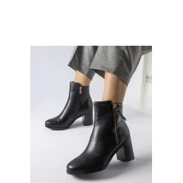 Černé vyhřívané klasické botky Edilio jsou ideální obuv na chladnější dny. Jejich vysoký podpatek dodává sebevědomí a teplý interiér zajistí pohodlí i během nejchladnějších dnů. Botky mají praktický zip, co usnadňuje jejich obouvání a svlékání. Vyrobené z umělé hmoty jsou odolné proti vlhkosti a skvěle chrání před deštěm a sněhem. Jejich mandlový nos dodává jemnosti a ženského šarmu. Botky Edilio jsou ideální na zimní procházky nebo večerní výlety, splňují všechna očekávání.