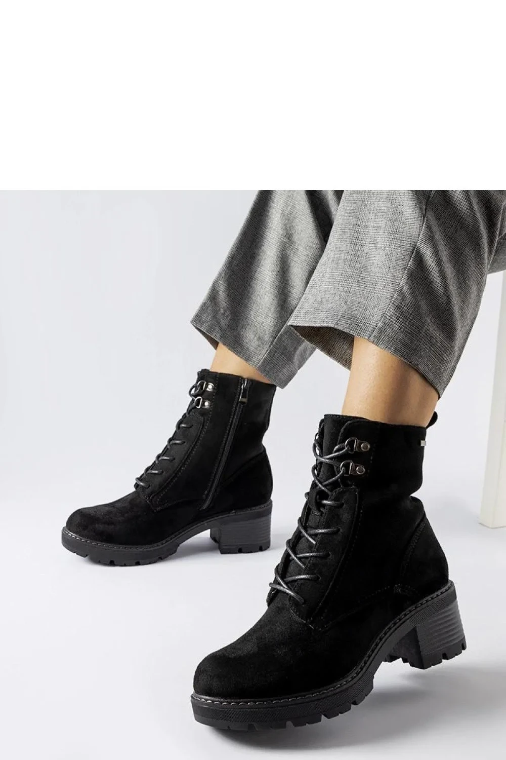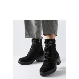Černé šněrovací kozačky Clementina jsou ideální obuví pro chladnější dny. Zateplený vnitřek poskytuje teplo a pohodlí a díky pohodlnému vázání si boty snadno přizpůsobíte svým potřebám. Kozačky mají kulatou špičku, která jim dodává jemný půvab a díky níž se hodí k mnoha outfitům. Jejich výška po kotníky zvýrazní štíhlé nohy a dodá jim ženský půvab. Díky zipu se boty snadno nazouvají i vyzouvají. Vnější materiál je z ekologické kůže a podrážka je vyrobena z gumy. Černé boty na klínku Clementina jsou nejen stylové, ale také praktické a pohodlné, ideální pro zimní dny. Díky odolnosti vůči povětrnostním vlivům, zateplené podšívce a stabilnímu podpatku jsou nepostradatelné pro každodenní nošení.