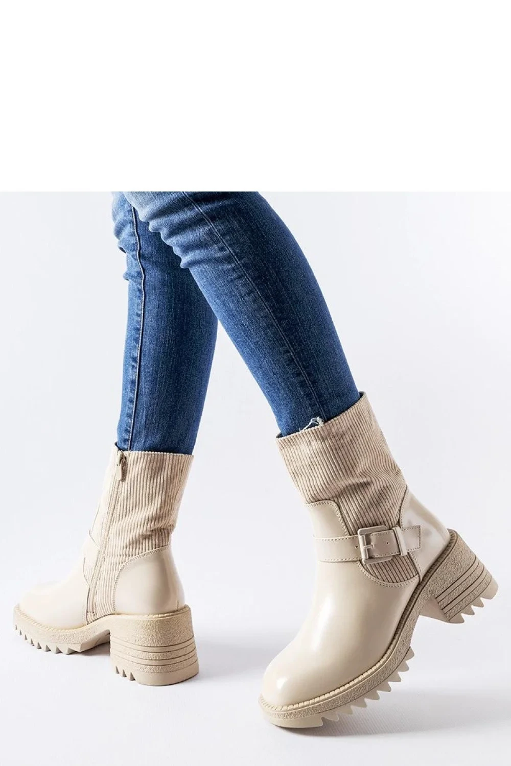 Beige botky na masivním sloupku Castelvetrano jsou skvělou volbou pro nadcházející podzim a zimu. Jejich vysoký střih nad kotníkem poskytuje ochranu před chladem, a zateplený interiér zaručuje, že budete teplá a pohodlná za jakýchkoli atmosférických podmínek. Pryžová podrážka zajišťuje stabilitu a jistotu kroků, díky čemuž tyto botky nejsou pouze stylové, ale také funkční. Kulatý špičák dodává botám ženský šarm a činí je univerzálními, hodícími se k mnoha různým outfitům. Bežová barva je nadčasová a snadno ji lze kombinovat s dalšími kousky oblečení, což z těchto bot dělá skvělé doplnění každého outfitu. Botky na masivním sloupku Castelvetrano se skvěle osvědčí jak pro každodenní nošení, tak i na formálnější příležitosti. Bez ohledu na to, zda jdete na rande, obchodní schůzku nebo procházku městem, tyto botky budou skvělou volbou. Kombinace trendových vzorů s pohodlím a funkcionalitou z těchto bot dělá ideální doplněk do vaší šatníku na nadcházející měsíce.