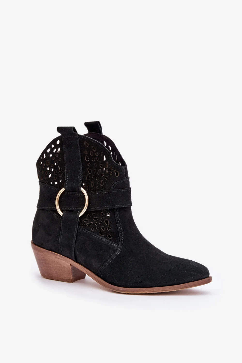 Elegantní a stylové dámské kotníkové boty vyrobené z přírodního semiše, které skvěle kombinují módní vzhled s pohodlím. Model s nízkým podpatkem, ideální pro každodenní nošení i pro formální stylizace. Průsvitný svršek zdobený jemným akcentem jim dodává jedinečný charakter. Špičaté špičky opticky zúží nohu a dodají eleganci každému outfitu. Skvělá volba pro ženy, které si váží kvality, stylu a pohodlí.
