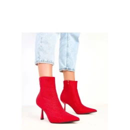 Oslnivé dámské kozačky na podpatku vyrobené z měkké, ekologické semišové kůže. Model okouzluje elegantním střihem a zpracováním, celá plocha boty je pokryta třpytivými zirkony, které krásně odrážejí světlo a dodávají botám výjimečný večerní charakter. Štíhlá špičatá špička a 9centimetrový podpatek typu jehla opticky prodlužují nohy a zdůrazňují postavu. Svršek vysoký 14 cm jemně obepíná kotník, a zapínání na zip zaručuje pohodlí při obouvání. Vnitřek je vyroben z měkké látky, což zajišťuje pohodlí během nošení. To je ideální volba pro ženy, které ocení eleganci a lesk, skvělé na večerní, koktejlové nebo speciální příležitosti. materiál umělá semišové kůže