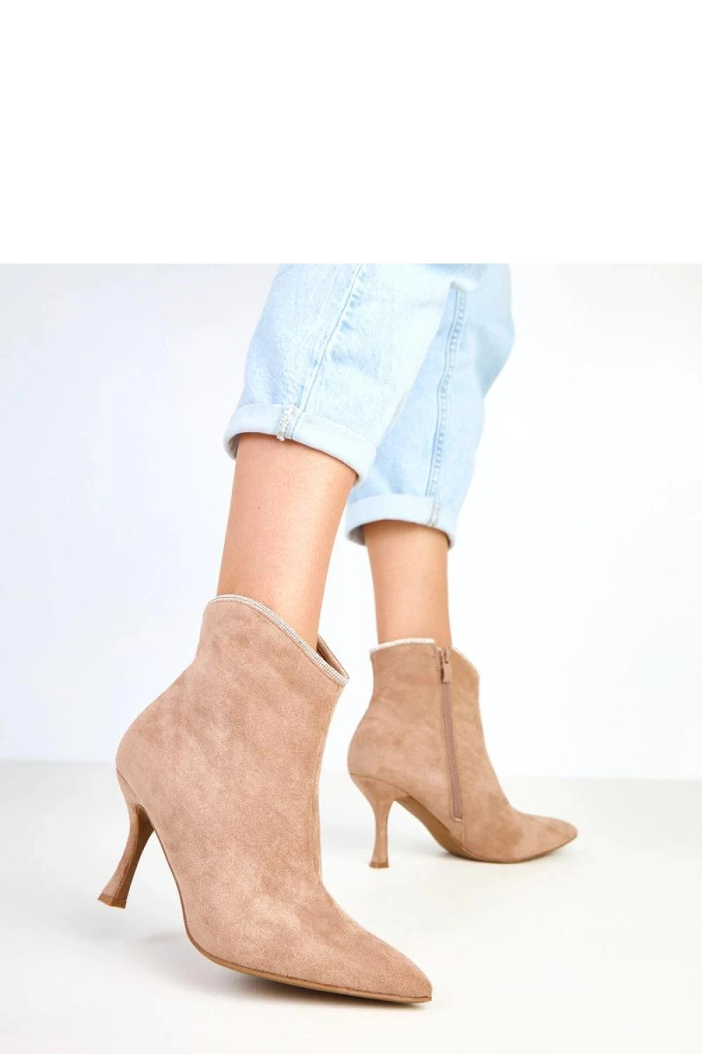 Elegantní dámské kotníkové boty vyrobené z měkké ekologické semišové kůže, které se vyznačují jemným, a zároveň efektním detailom, zdobením s cirkonii na horním okraji hole. Toto drobné ozdoby přidává botám eleganci a skvěle ladí s večerními styly. Model s 12 cm vysokou hole jemně obepíná kotník, špičatý nos a 8,5 cm sloupovým podpatkem krásně zjemňují postavu, zajišťují stabilitu a pohodlí. Praktické zapínání na zip usnadňuje obouvání, a vnitřek je vyroben z měkké látky bez podšívky, díky čemuž se boty skvěle osvědčují v přechodném období. To je ideální volba pro ženy, které ocení eleganci s nádechem lesku.