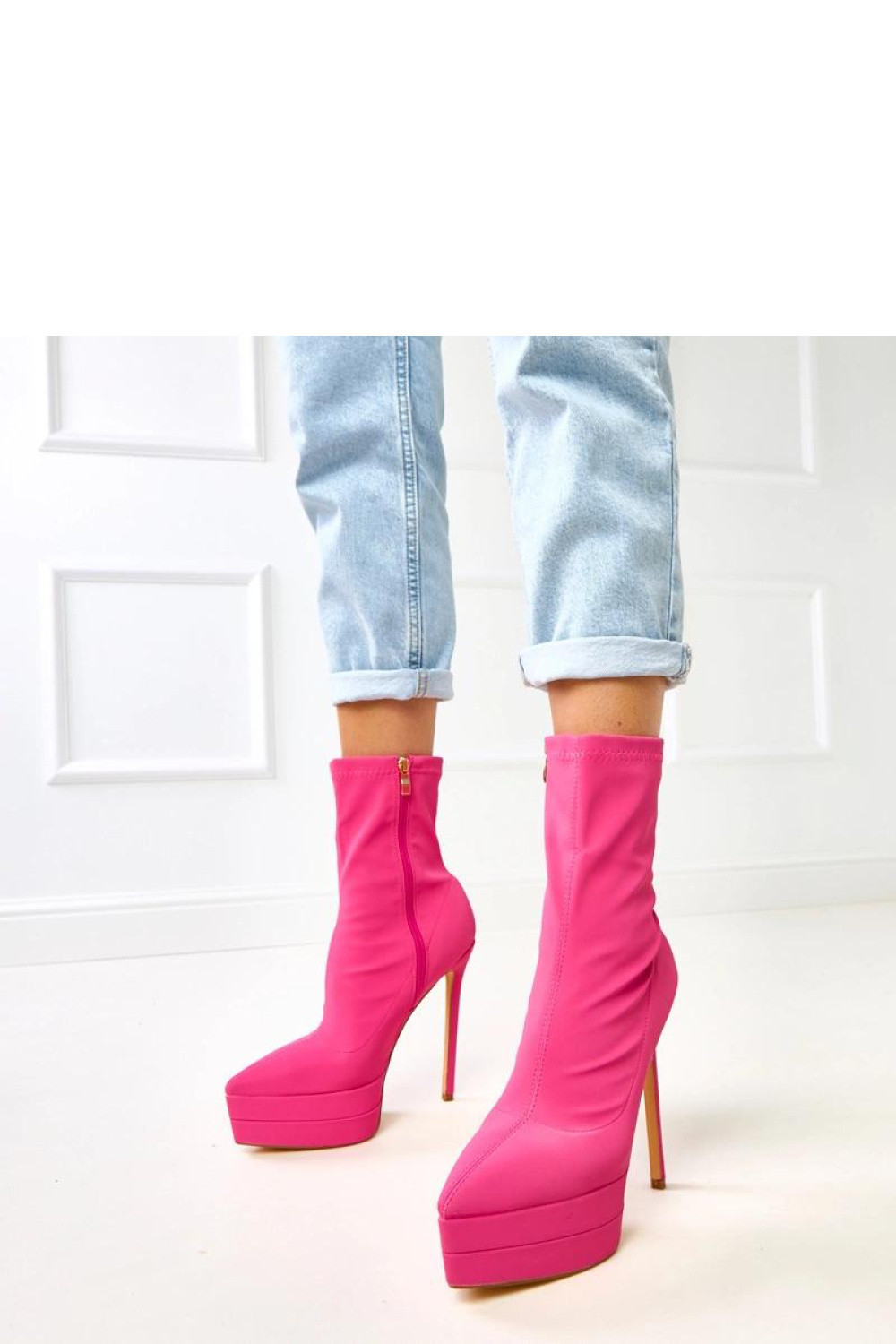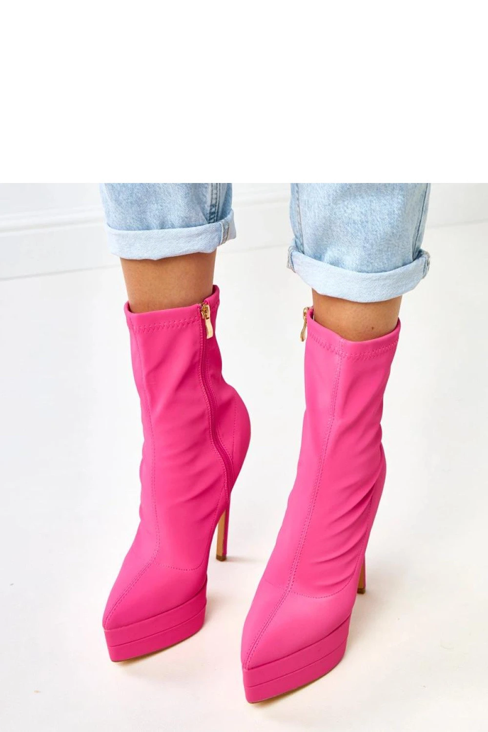 Elegantní dámské botky vyrobené z saténu, které se vyznačují luxusním leskem a ženským charakterem. Model má štíhlý špičatý nos, 15,5 centimetrový podpatek typu špendlík a 4,5 centimetrovou platformu, co zajišťuje efektní zúžení postavy při zachování stability. 16 cm vysoký svršek krásně zdůrazňuje linii nohou, a praktické zipové uzavírání usnadňuje obouvání. Vnitřek je vybaven látkou a absence vnitřního vycpávání zajišťuje, že botky budou ideální na jarní a letní sezónu nebo večerní události. Jedná se o efektní a elegantní model, který dodá eleganci večerním a módním stylizacím, přitahujíc pohledy jemným leskem saténu.