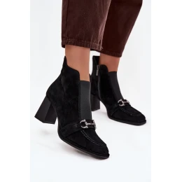 Botky značky Artiker jsou elegantní nabídkou na chladnější dny, spojující styl s pohodlím. Vyrobené z přírodního semiše vypadají mimořádně elegantně, a jemně zaoblené špičky zdůrazňují jejich klasický charakter. Model je umístěn na stabilním sloupkovém podpatku, který krásně zúží postavu a zároveň poskytuje pohodlí při každodenním nošení. Vnitřek je vybaven obuvnickým koženým rounem, díky čemuž jsou boty teplé a vhodné na podzim a zimu. Pozornost přitahuje pásek s ozdobným prvkem umístěným vpředu, který dodává originalitu a jemnou eleganci. Jedná se o stylovou obuv ideální k doplnění jak každodenních, tak formálních stylizací.