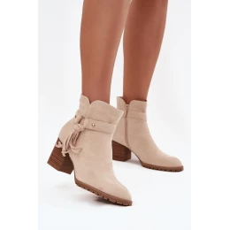 Botky dámské vyrobené z ekosuše. Klasický střih s kulatými špičkami byl obohacen páskem s řasami, který botám dodává originalitu. Model umístěný na stabilním sloupkovém podpatku krásně zeštíhluje postavu a zároveň poskytuje pohodlí během každodenního nošení. Praktické zapínání na zip usnadňuje obouvání a svlékání, díky čemuž jsou botky pohodlné v užívání. Jedná se o obuv, která se skvěle osvědčí v podzimně-zimní sezóně, představující stylové doplnění jak k volnočasovým, tak k elegantnějším outfitům.