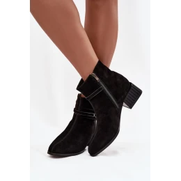 Elegantní dámské kotníčkové boty vyrobené z přírodního semiše jsou spojením elegance a pohodlí. Model na stabilním podpatku typu kostka zaručuje pohodlí během nošení, a prošívaný interiér se skvěle hodí na chladnější dny. Boty se zapínají na zip, co usnadňuje obouvání. Ozdobný pásek a prošívání podél lícové části vpředu dodávají botám šarm a zdůrazňují jejich stylový, ženský charakter. Skvělá volba pro ženy, které oceňují eleganci v každodenním stylu, ideální na práci, schůzky a běžné nošení.