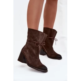 Dámské botky vyrobené z přírodního semiše jsou elegantní nabídkou pro ženy, které ocení styl a pohodlí. Model se nasazuje moderně a podpatek ve formě stabilního sloupku dodává postavě lehkost a zajišťuje pohodlí nošení. Na svršku je jemná šňůrka, která umožňuje přizpůsobit botky noze a decentně zdůrazňuje jejich ženský charakter. Jedná se o univerzální model, který se skvěle hodí jak do každodenního, tak do elegantnějšího stylu.